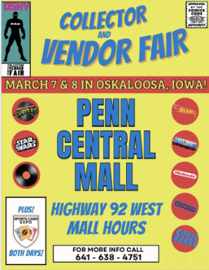 Dean is Iowa-Bound this weekend, and will be setting up in the Penn Central Mall. Come on over and shop from vendors from all over! Find the most unique collectables! Additionally, there is a Sports Card Expo happening at the same time!